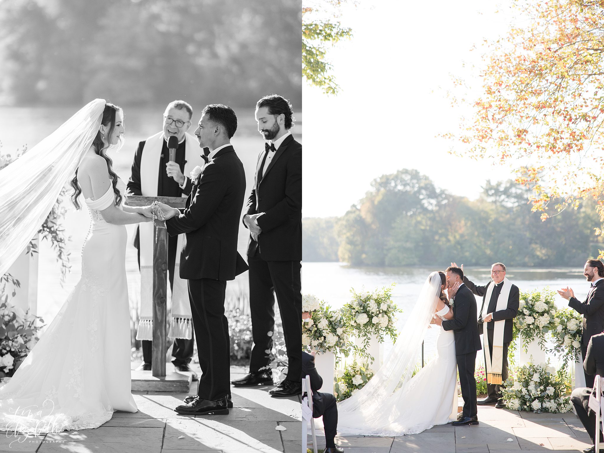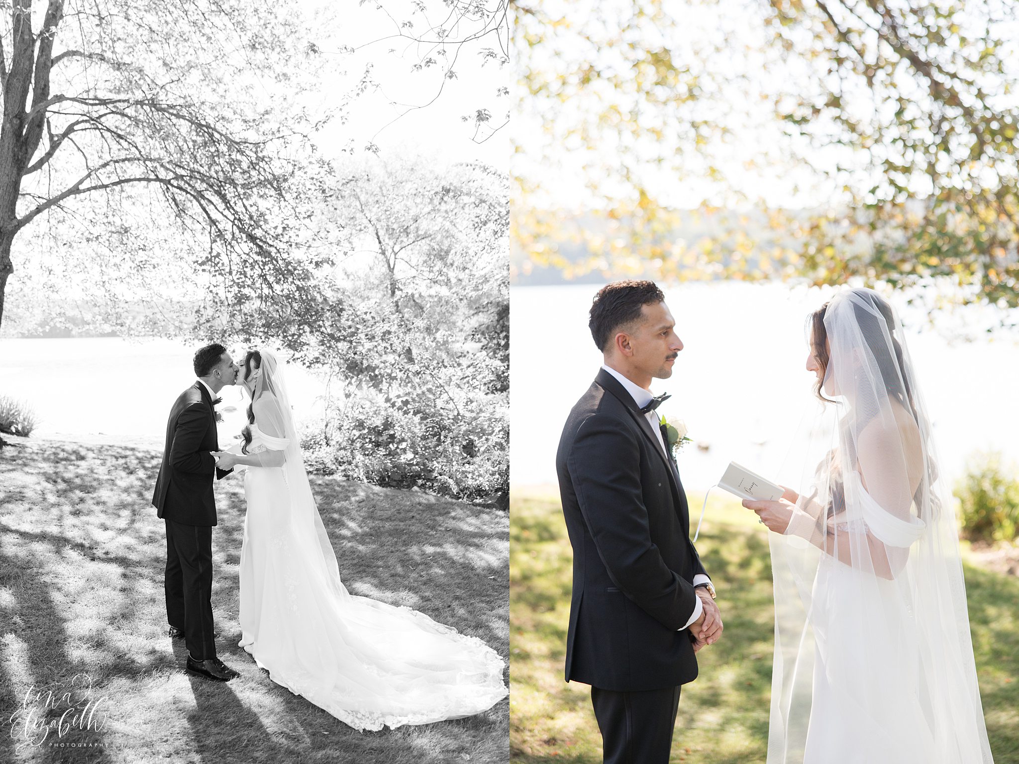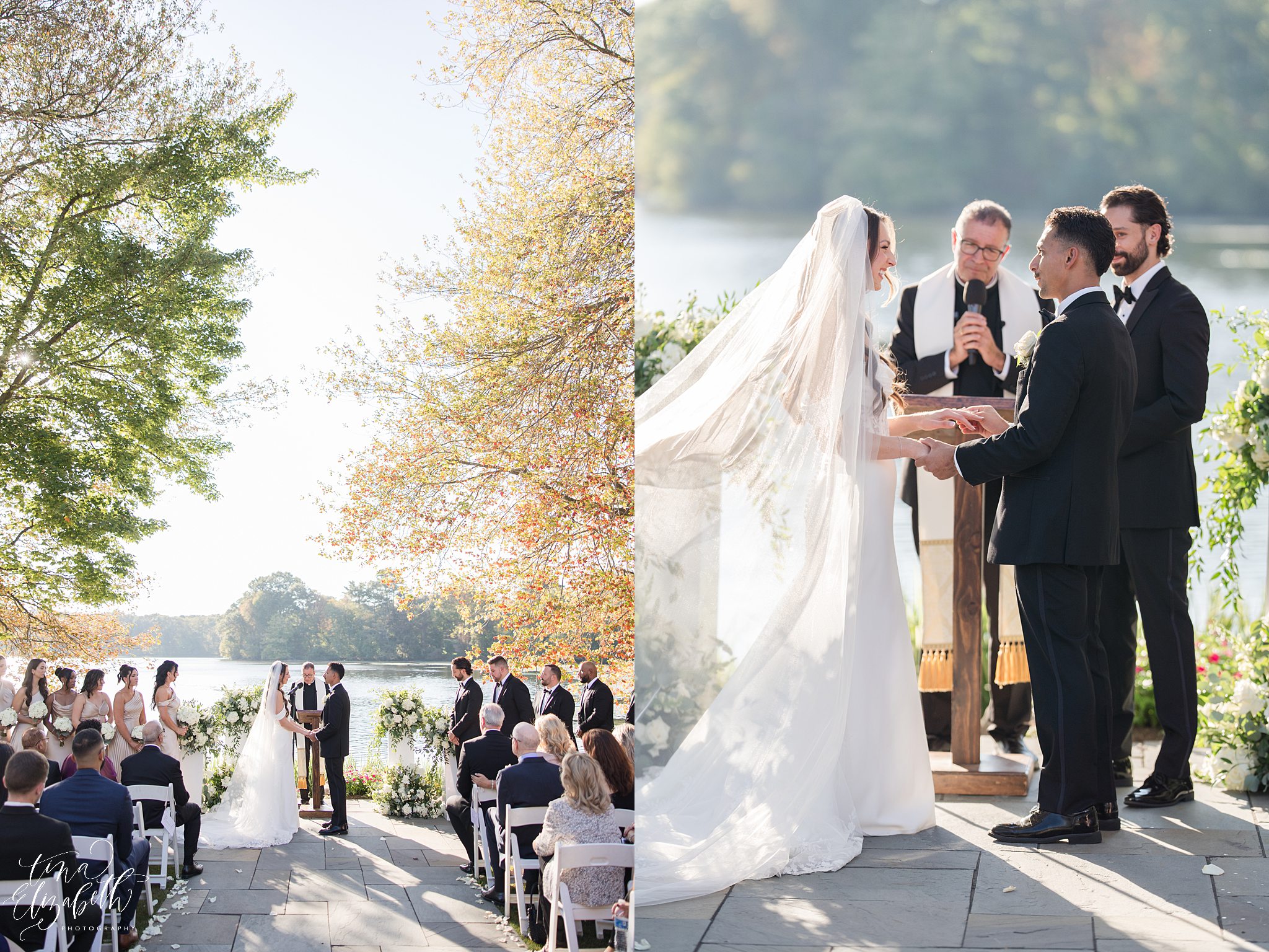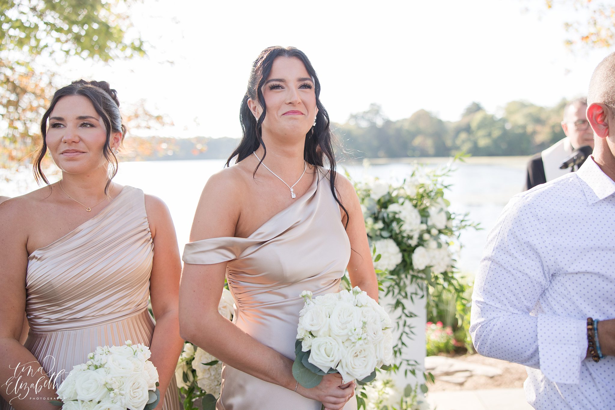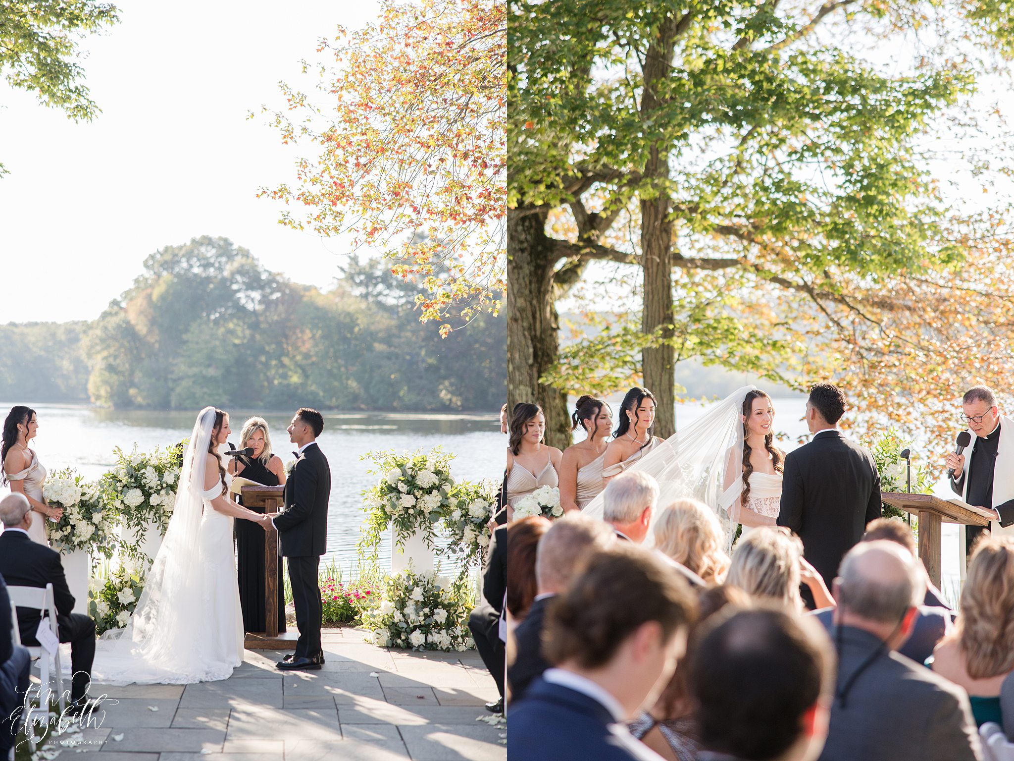 Taylor and Danny’s ceremony was nothing short of magical. Set against the sparkling lake and framed by the sunshine and foliage beginning, their “I do’s” felt even more powerful surrounded by nature’s beauty. Their priest spoke about the incredible paths they’ve chosen—Taylor as a physical therapist and Danny as a police officer—honoring the compassion, bravery, and selflessness they bring not only to their work, but also to their marriage. It was heartfelt, emotional, and joyful—a true reflection of the love they share.