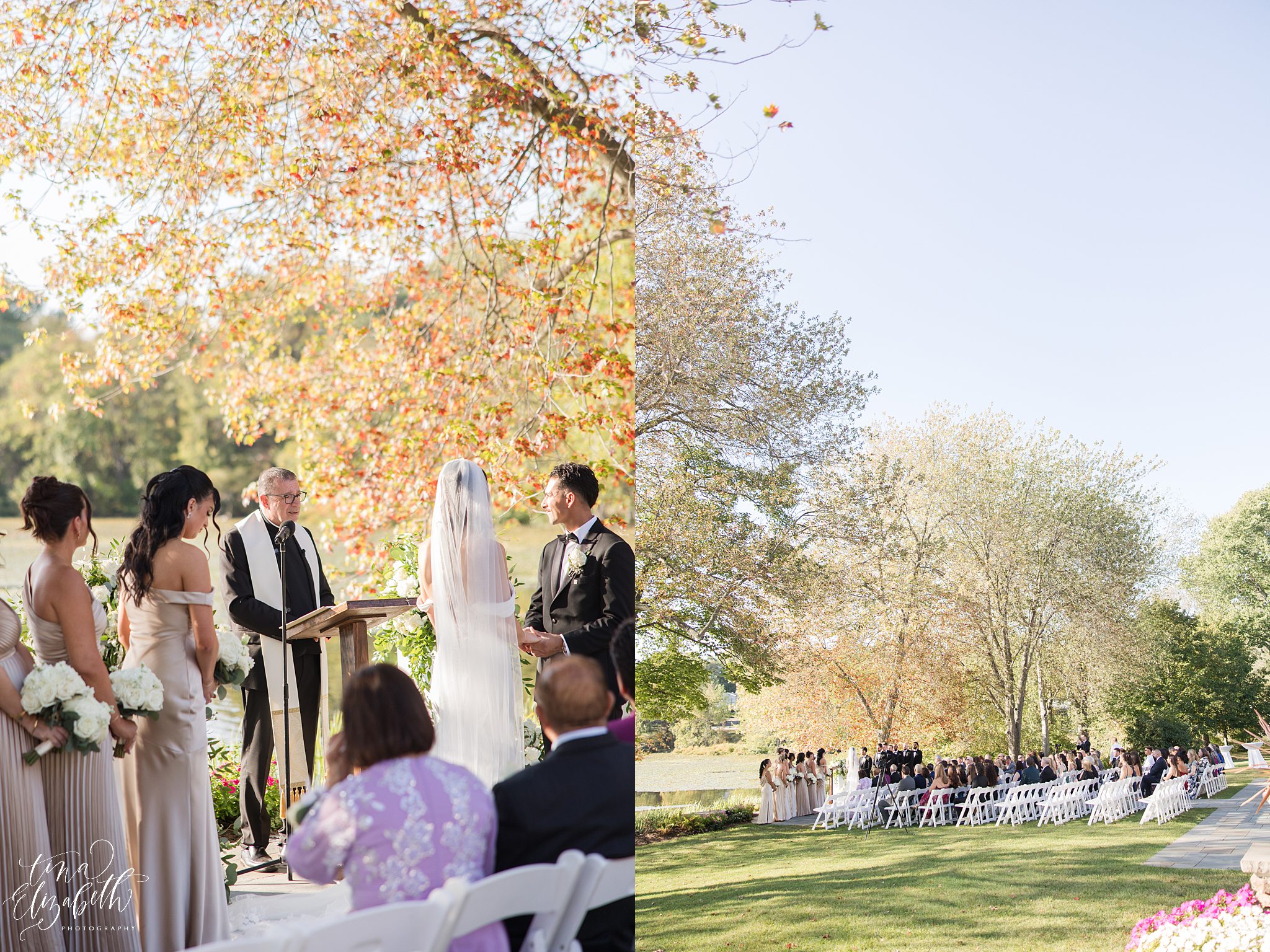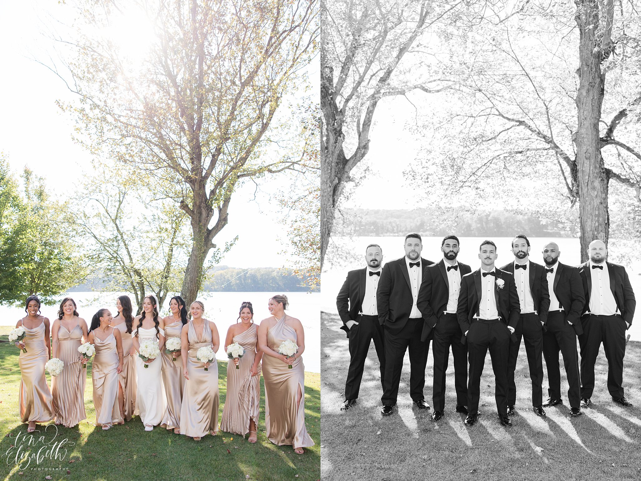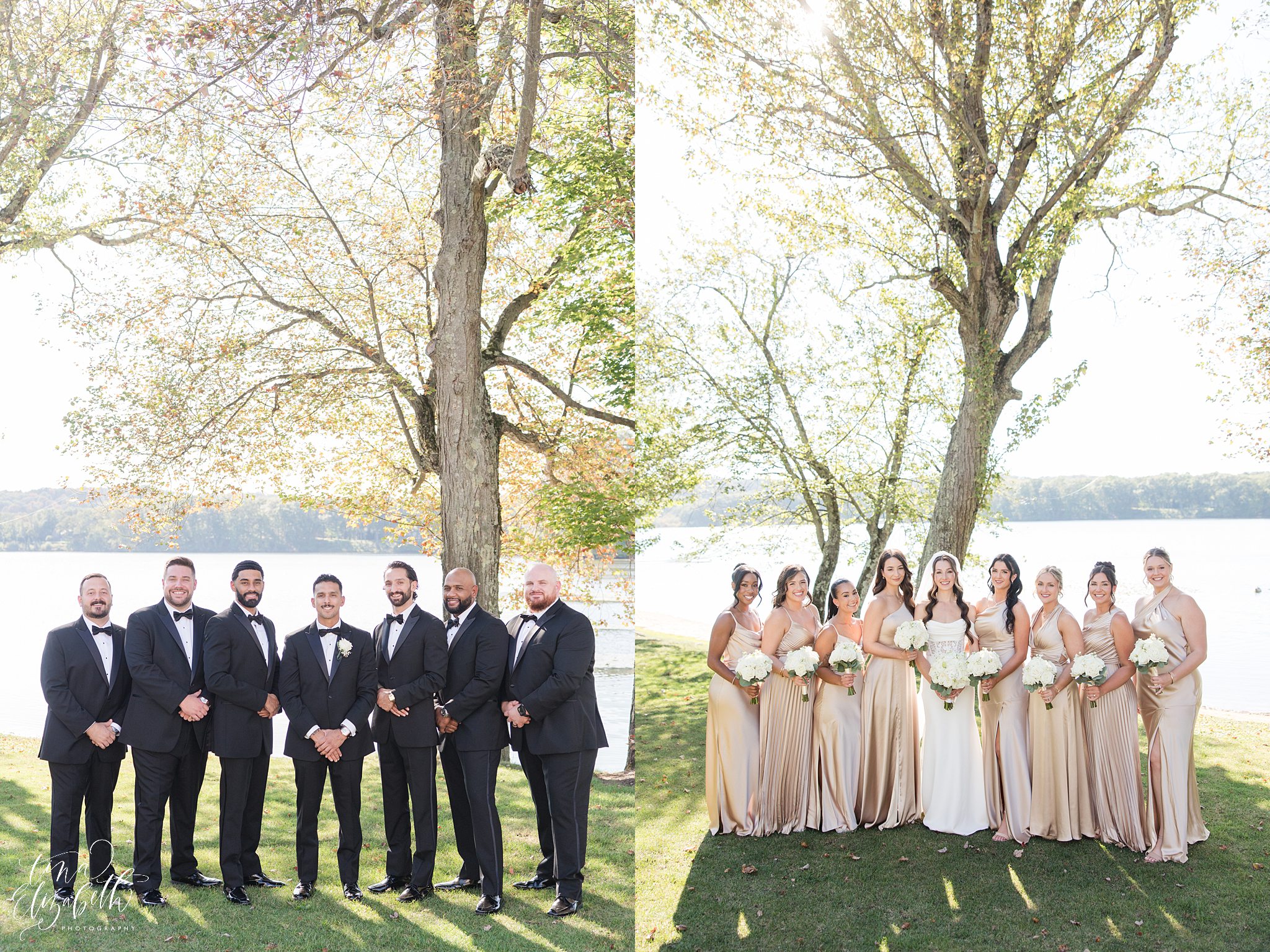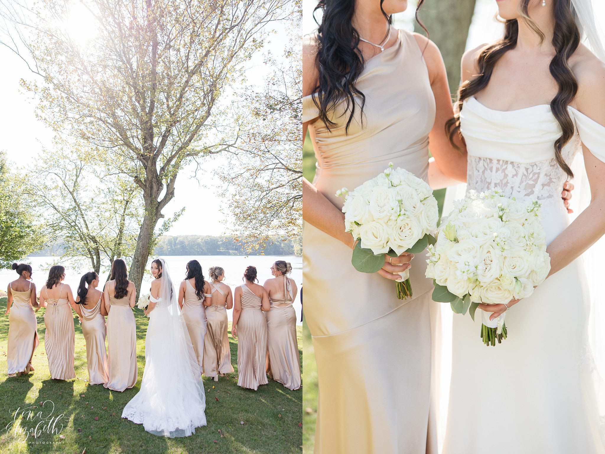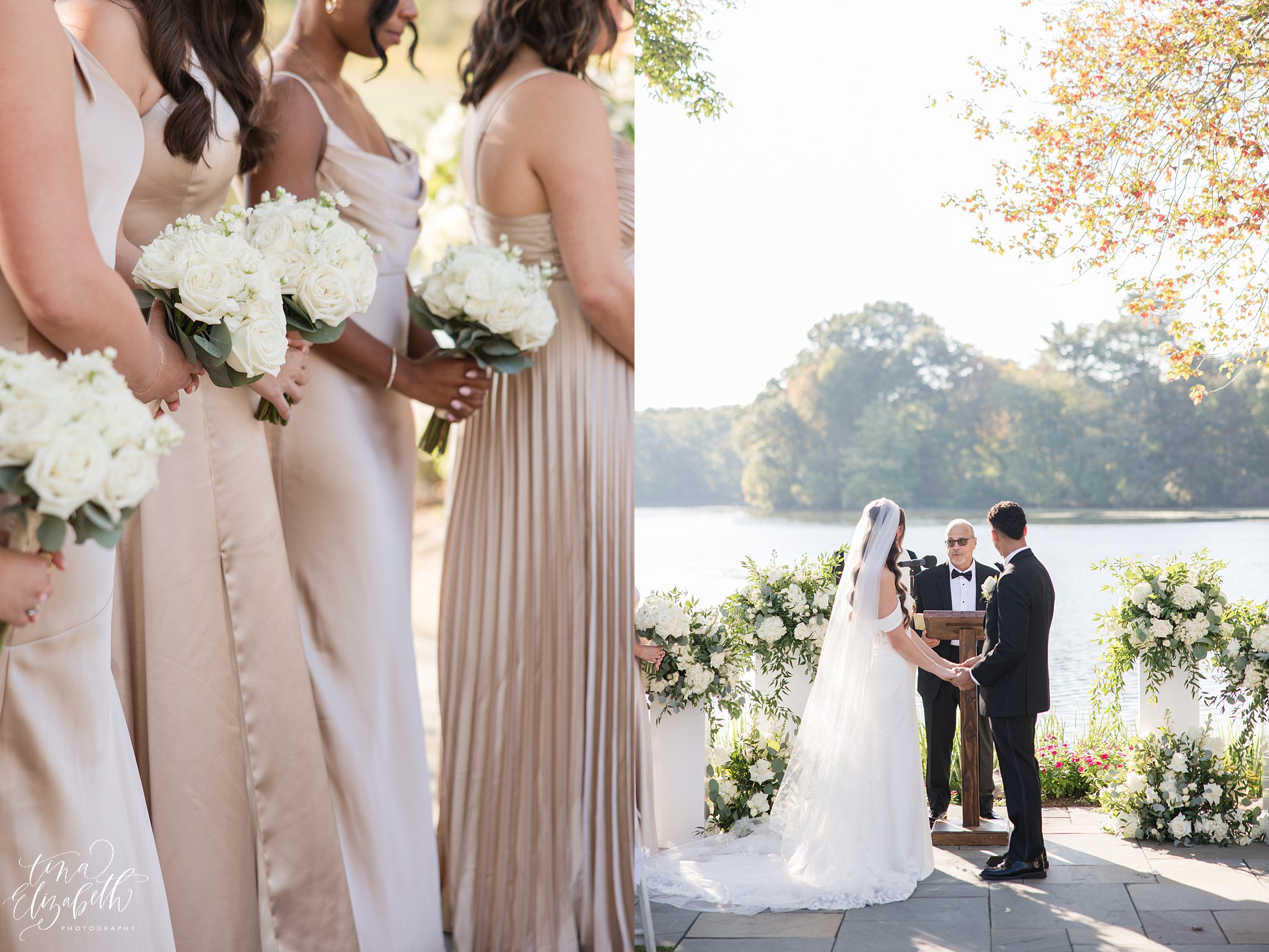 Taylor and Danny’s ceremony was nothing short of magical. Set against the sparkling lake and framed by the sunshine and foliage beginning, their “I do’s” felt even more powerful surrounded by nature’s beauty. Their priest spoke about the incredible paths they’ve chosen—Taylor as a physical therapist and Danny as a police officer—honoring the compassion, bravery, and selflessness they bring not only to their work, but also to their marriage. It was heartfelt, emotional, and joyful—a true reflection of the love they share.