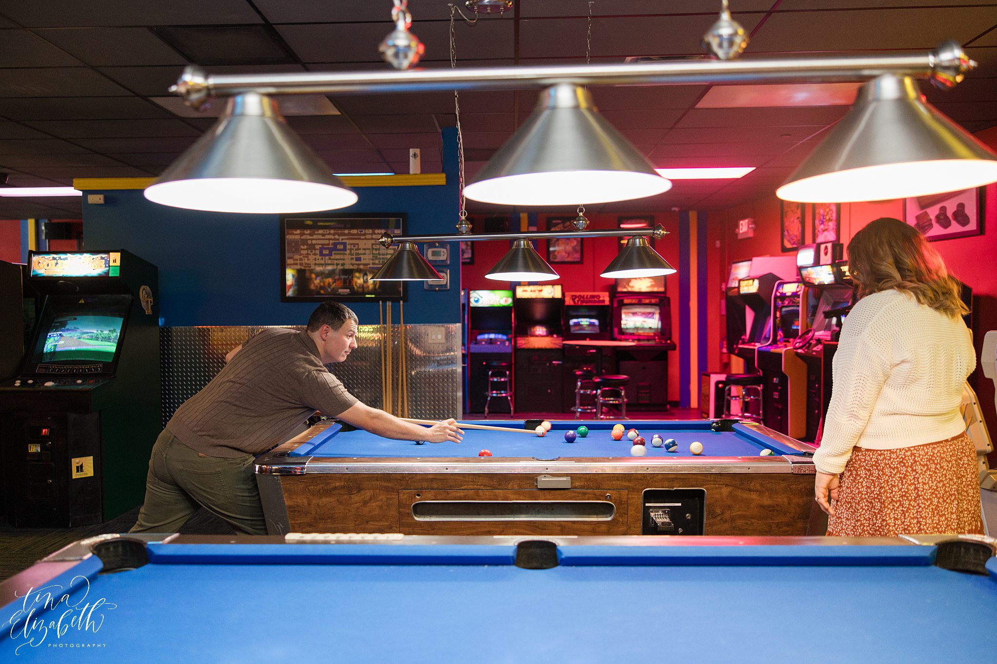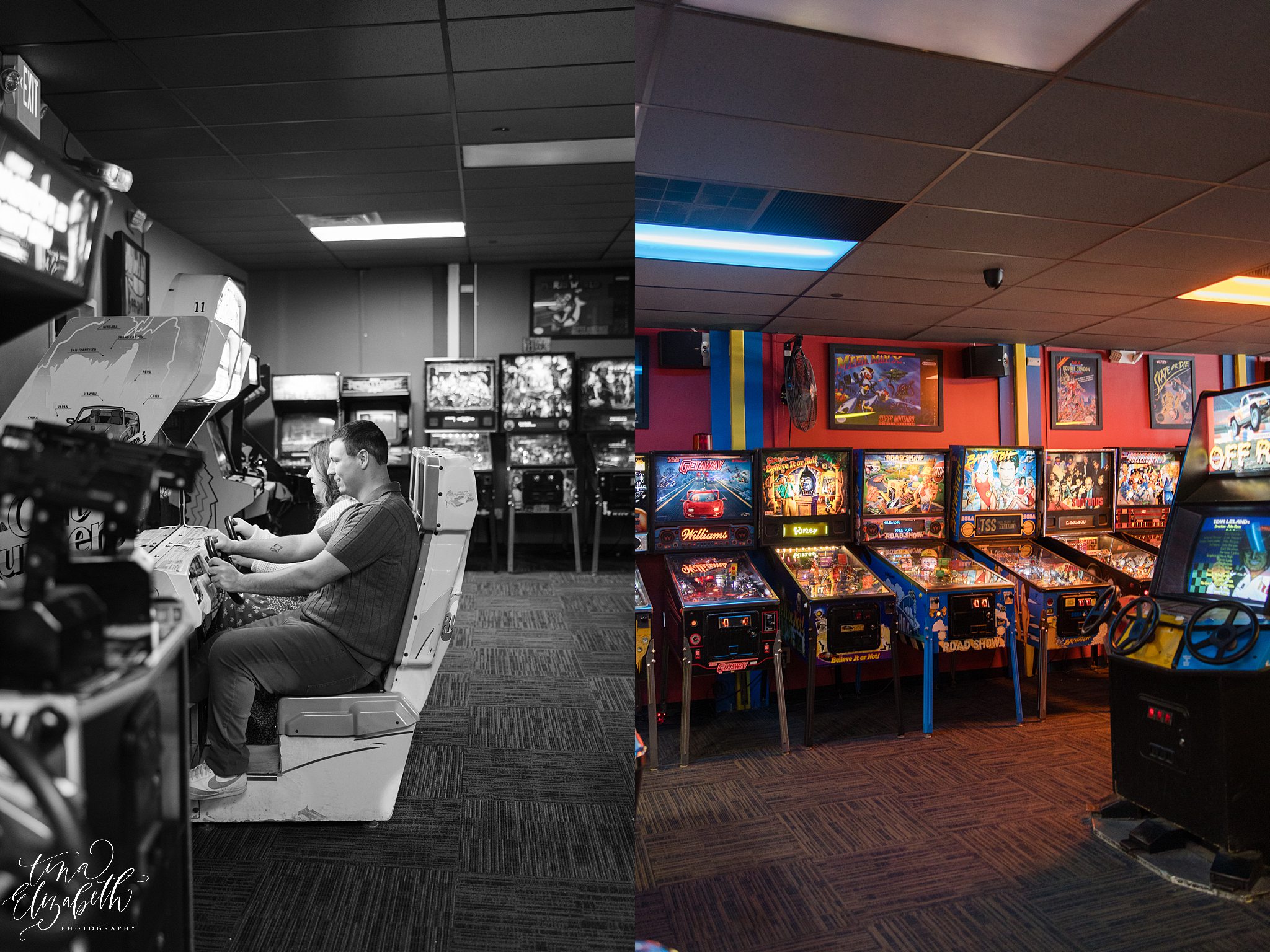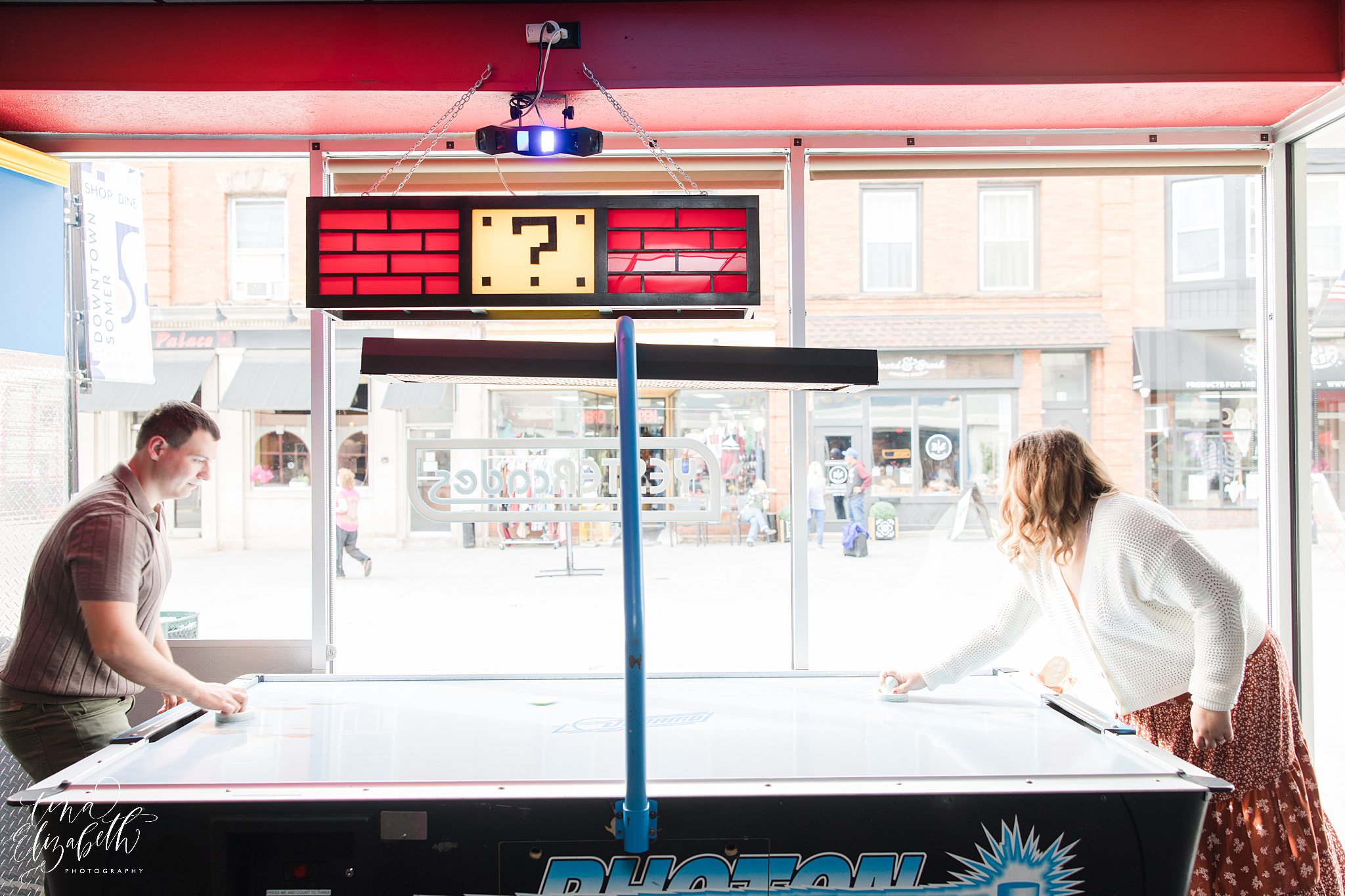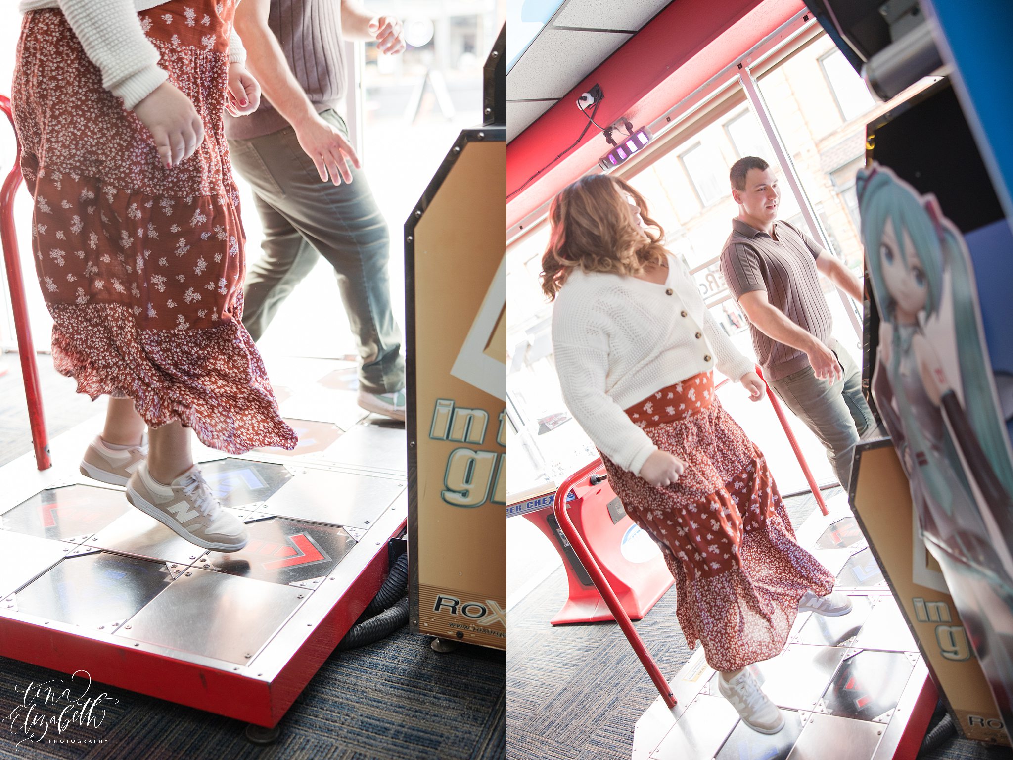 There’s nothing I love more than when we go back to where it all started for my couples at their engagement sessions. Brianna and Michael’s started with laughter, friendly competition, and a few rounds of NBA Jam at Yestercades in downtown Somerville. It’s where they had their very first date, and where they’ve spent countless nights since — playing old-school arcade games and just enjoying being together. Inside Yestercades, they were totally in their element — laughing over pinball scores, playfully challenging each other at air hockey, and reminiscing about their first night there. You could see how comfortable and connected they are — that easy kind of love that comes from years of shared memories and genuine friendship.