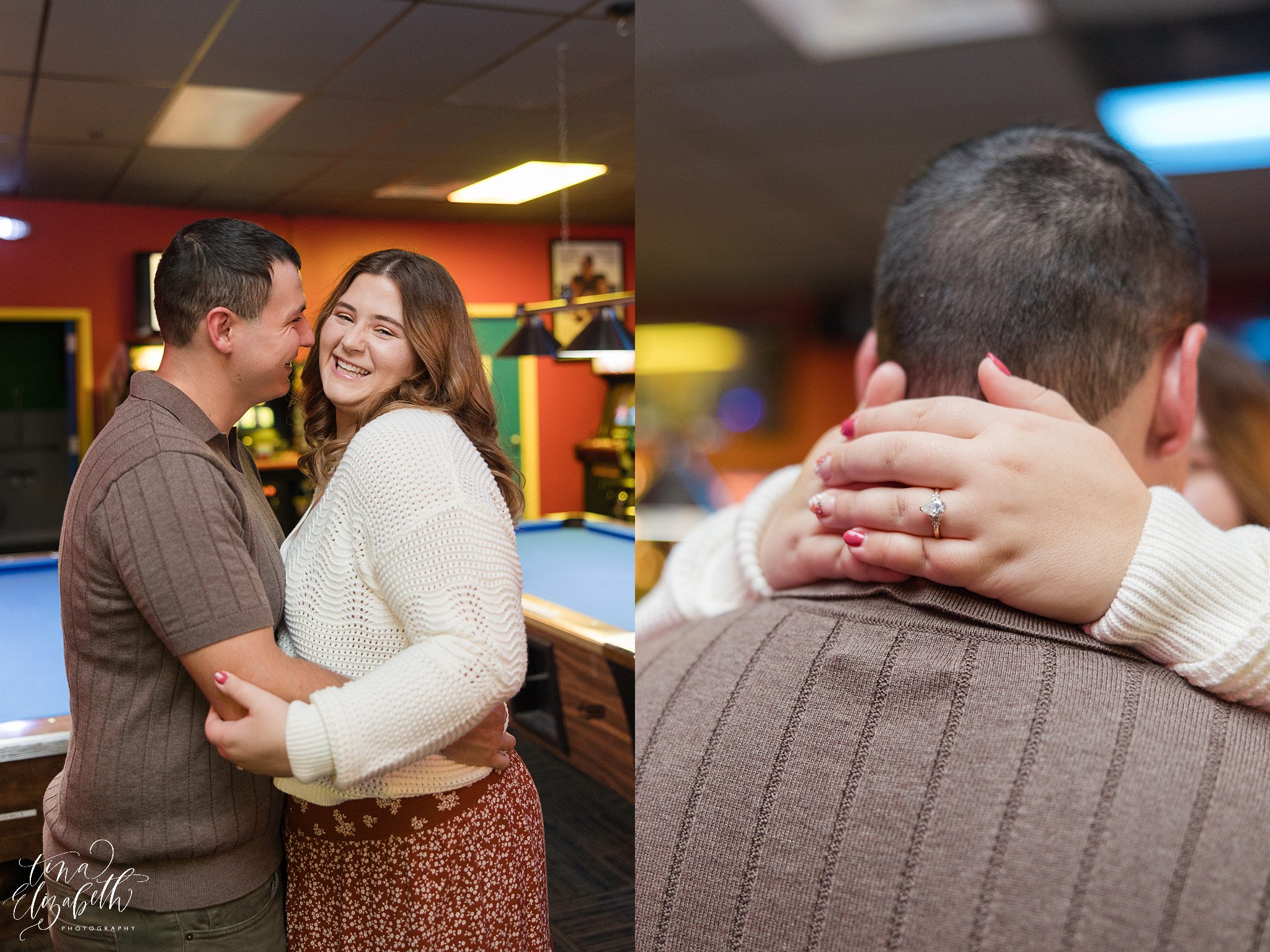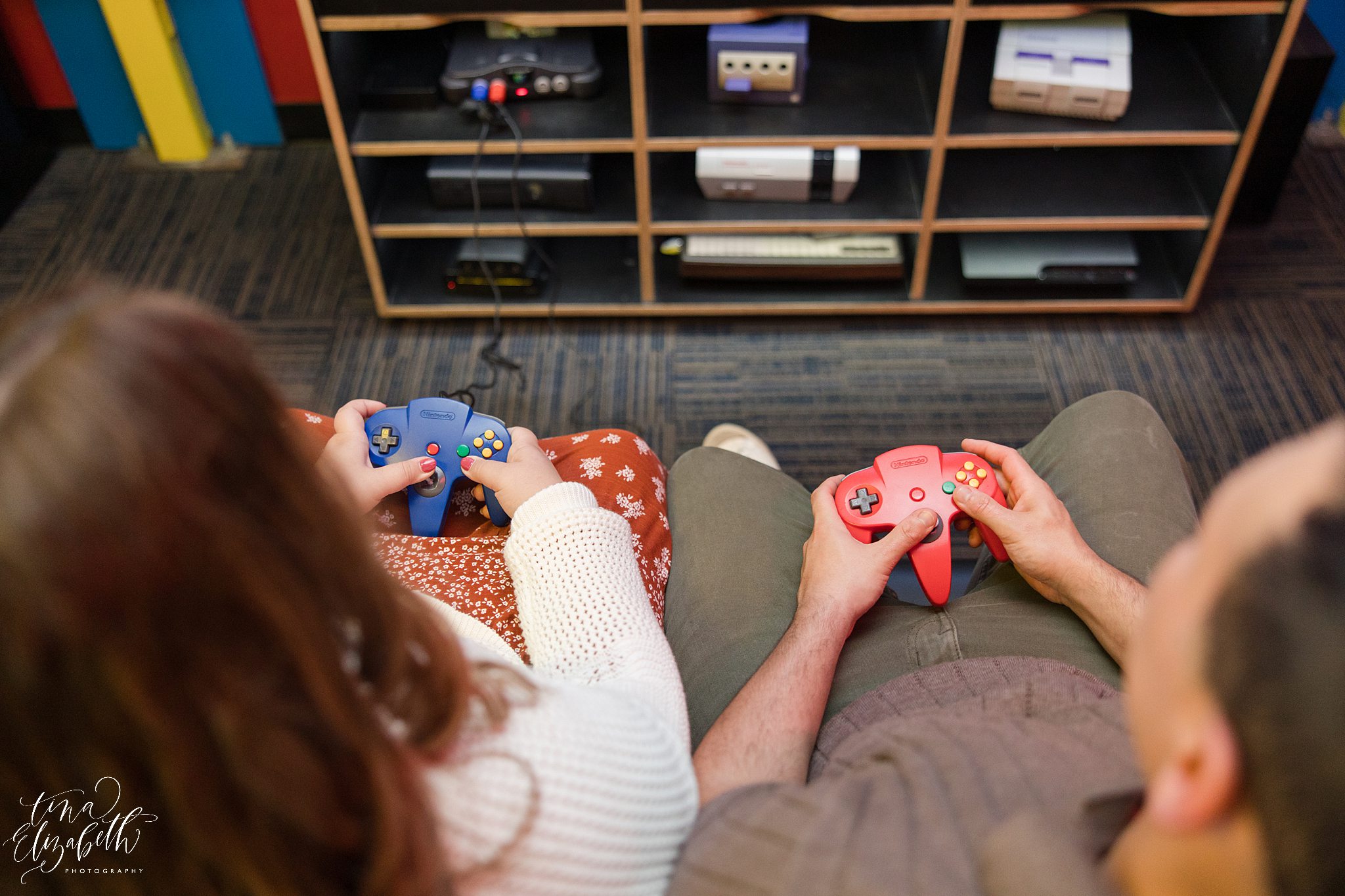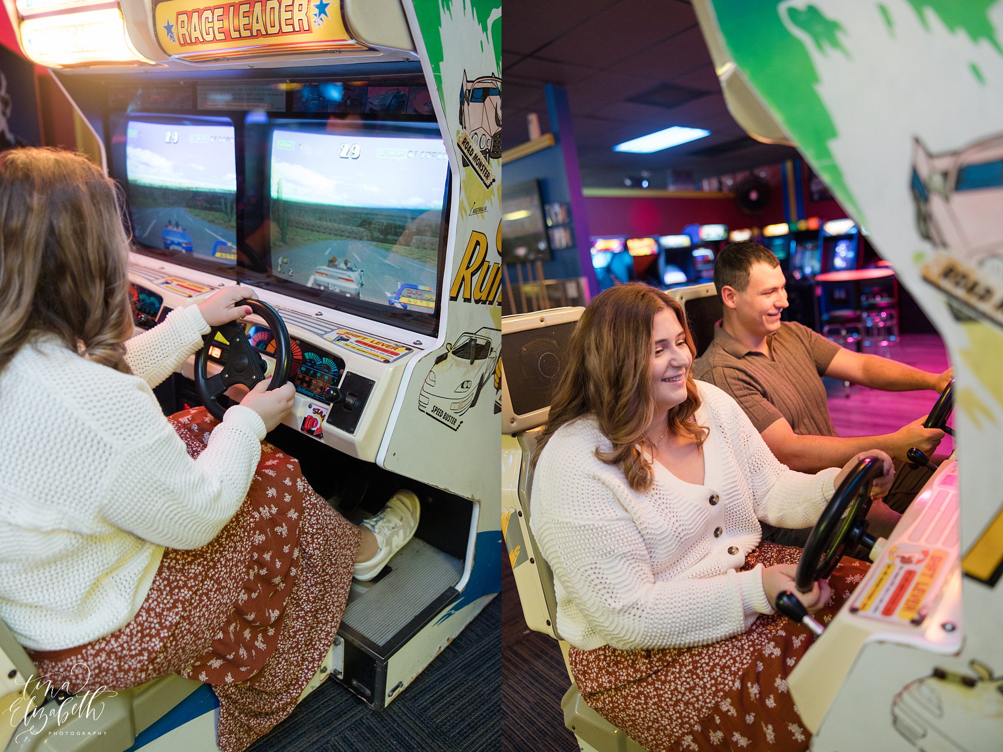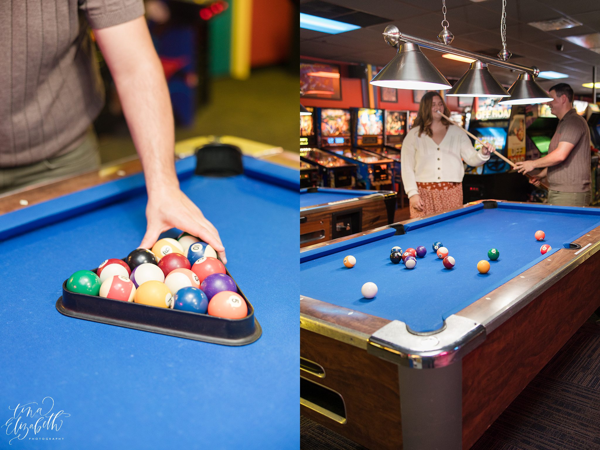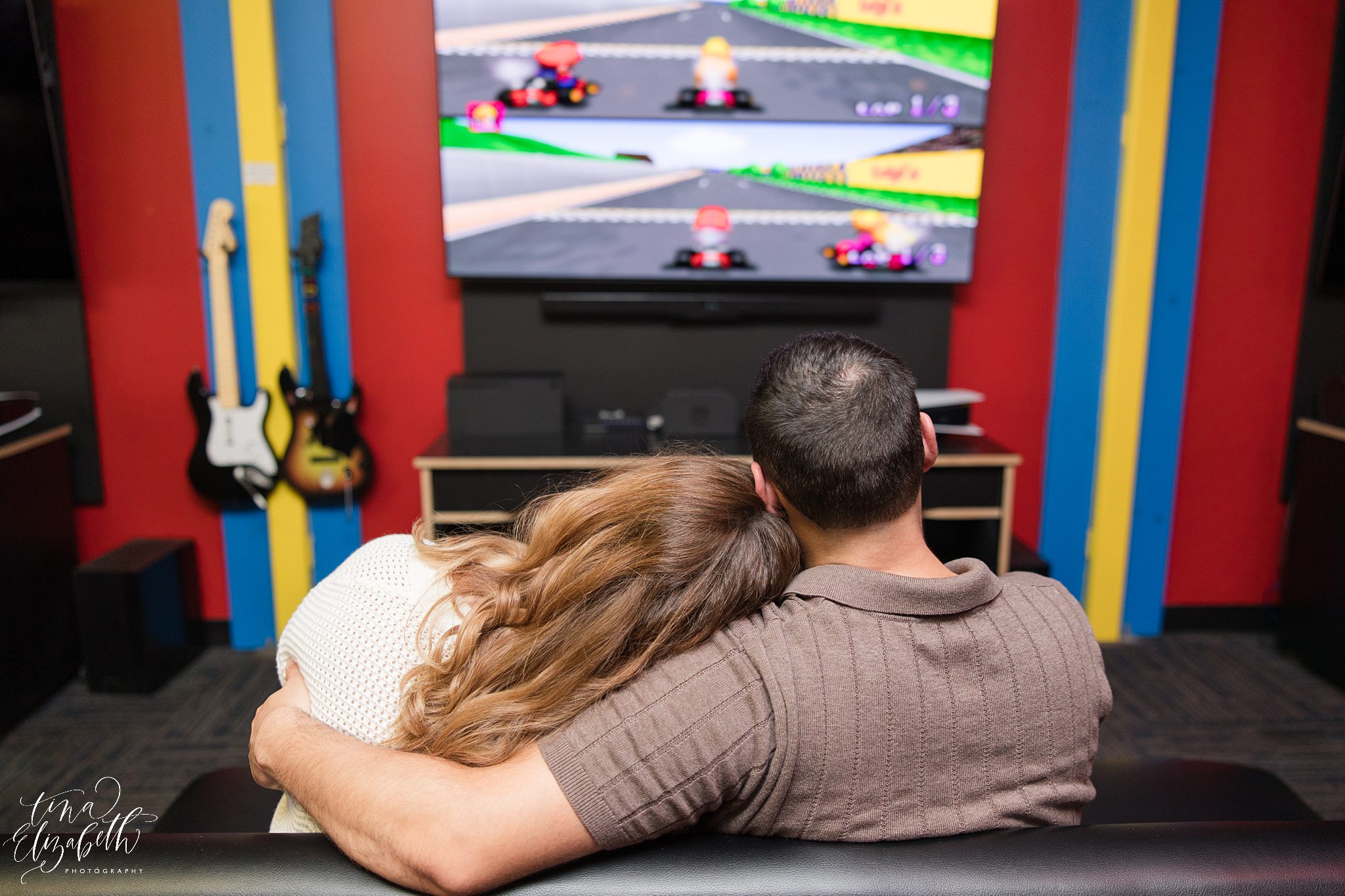 There’s nothing I love more than when we go back to where it all started for my couples at their engagement sessions. Brianna and Michael’s started with laughter, friendly competition, and a few rounds of NBA Jam at Yestercades in downtown Somerville. It’s where they had their very first date, and where they’ve spent countless nights since — playing old-school arcade games and just enjoying being together. Inside Yestercades, they were totally in their element — laughing over pinball scores, playfully challenging each other at air hockey, and reminiscing about their first night there. You could see how comfortable and connected they are — that easy kind of love that comes from years of shared memories and genuine friendship.